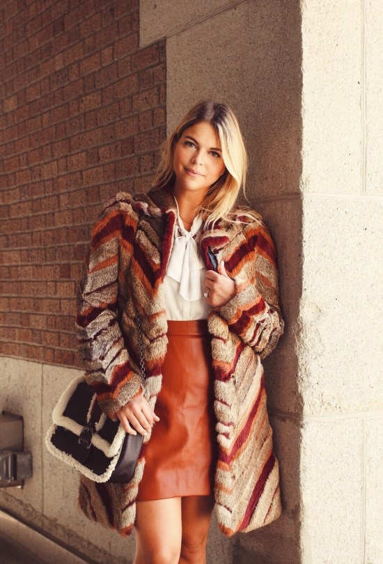 Katie in Longchamp Ready-to-Wear Fur Coat and Longchamp Amazone handbag